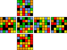 Here we will be showing a generalized method to solve all V-CUBES 4-11, and will work for larger sized cubes as well. This is a method that is based off of the reduction strategy, so you will need to be able to solve a 3x3 cube. A brief outline of the method is as follows: Solution Step One: Solve Centers Solution Step Two: Solve Edges Solution Step Three: Solve as 3x3 In following areas of the website, we will break down each of these steps into detailed ideas for you to follow. The example that will be used will be solving with a 6x6, since it has extra parity resolution steps, but this method works for all sizes of cubes. This reduction method will enable you to solve any sized big cube with a little practice and patience. We will provide an example solve to follow along, the scramble below has been checked, so apply it to your 6x6 cube starting with black as the Up face, and white as the Front. If any notation is confusing, please check our notation page for clarification, good luck! Scramble: d2 R2 B D2 U' r2 3f' l' 3r2 r D' d2 3u' l' 3u' U2 l' r' u' L 3u2 B2 D 3u' f' r2 3u' B2 F u l 3f 3u2 u' b2 F2 r2 F d' 3u2 b2 d' u' b2 F' D2 d r b2 F L 3r2 3f f D L 3r r' R2 D' 3u2 u L' l r' B2 l 3r R' D' u' L' r R' D B f' u r B2